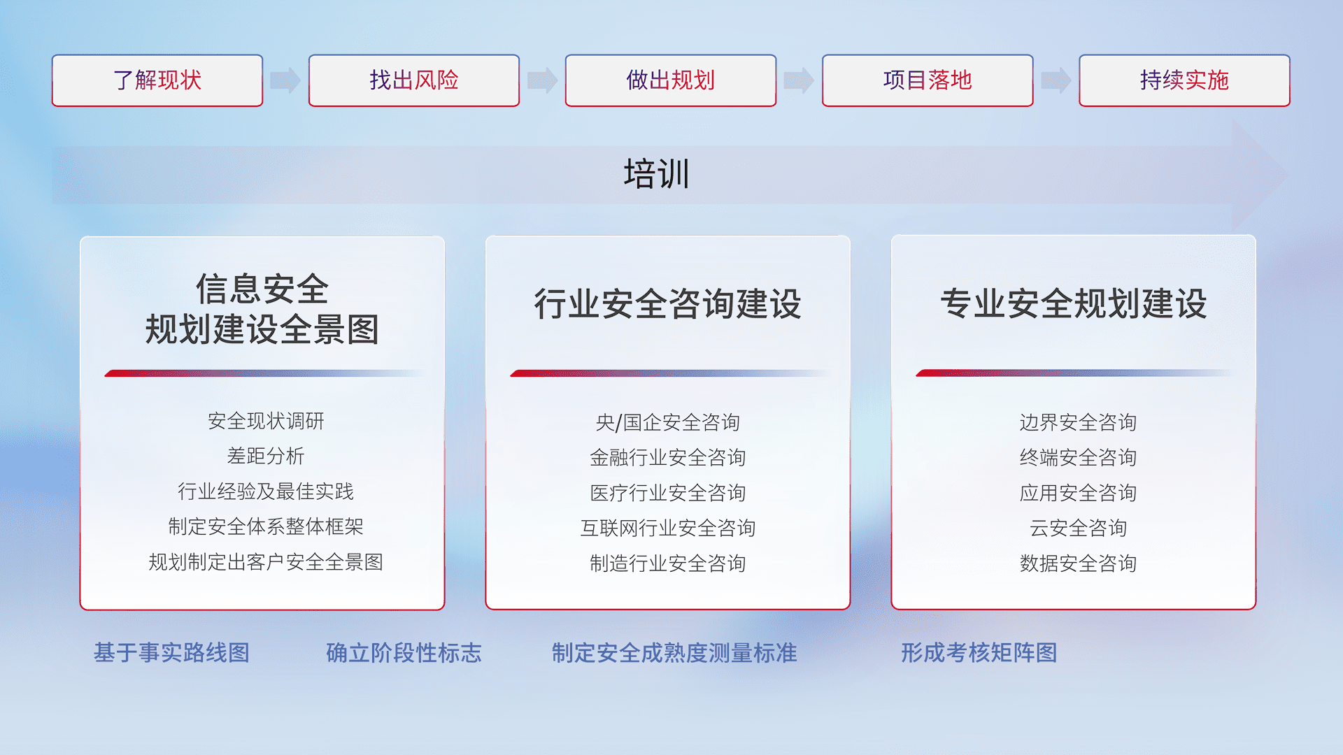 梳理客户信息安全现状调研、、、差距分析结果,,,结合行业先进经验及最佳实践,,制订客户的信息安全管控体系总结架构,,,最终形成一个完整的客户信息安全规划与建设的全景图。。。
