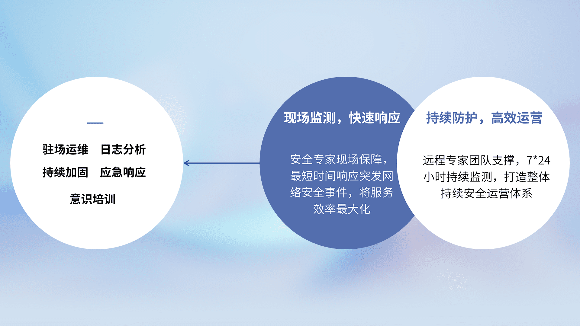 针对客户行业特性,,,提供专属的一站式安全管理服务,,,帮助客户全面感知网络空间威胁,,通过安全专家的线上、、、线下防护支持,,,实现风险闭环,,,,将安全保障常态化,,为客户打造常态化安全运维运营服务。。
